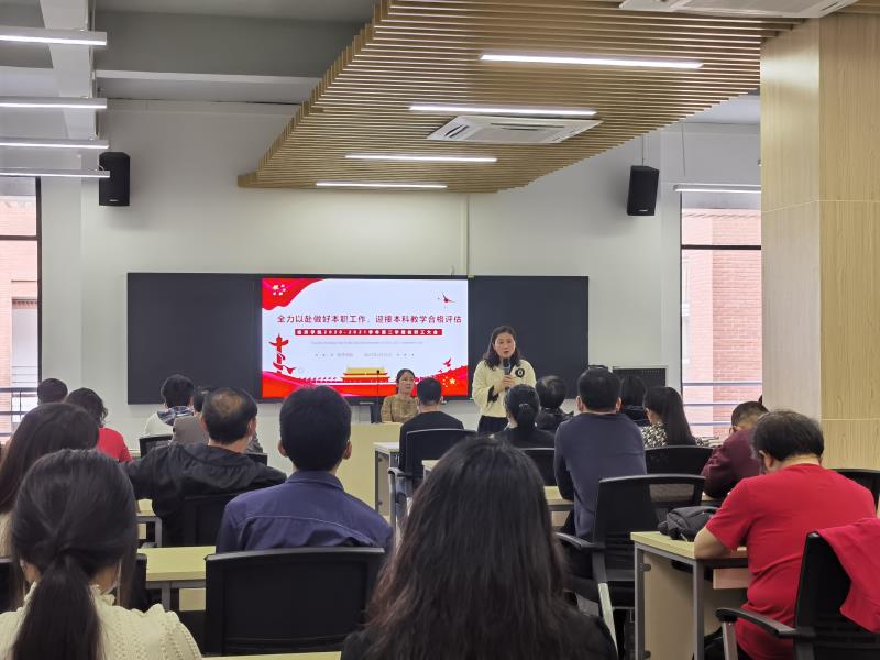 院长陈石清指出,2021年4月,我校将接受教育部本科教学工作合格评估。本科教学工作合格评估是对我校教育教学工作的一次全面检验,是对我校综合办学实力的一次全方位评价,事关学校发展的全局,事关学校发展的未来,事关全体教职员工的切身利益,全体教职工应以“以评促建、以评促改、以评促管、评建结合、重在建设”为指导思想做好有关工作。对此,陈石清提出了三点要求,一是要深刻认识评估工作的重大意义,紧密结合当前迎评工作实际情况和学校、学院的有关要求,加强对评估标准的再认识,切实增强紧迫感;二是全面抓紧抓好学风建设;三是做好磨课相关工作,以评促进。全体教职工应扎实做好迎评最后冲刺阶段的各项工作,以优异的成绩夺取评建工作的全面胜利!