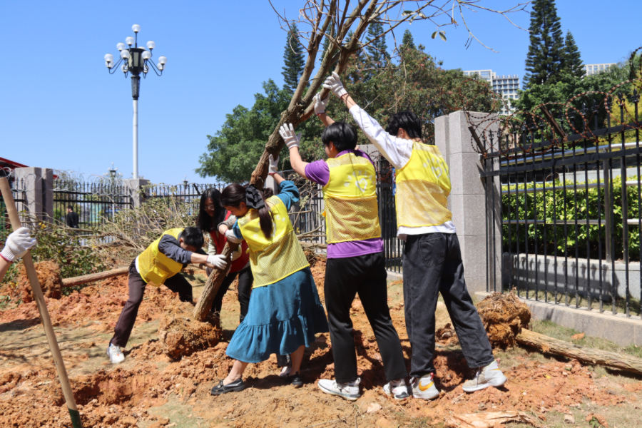 为践行“绿水青山就是金山银山”的重要理念,深入推进绿美广东生态建设行动,3月12日,suncitygroup太阳集团开展了“‘植’此青绿,共‘树’未来”主题植树活动。在学校团委的组织下,suncitygroup太阳集团带领部分师生前往汤村地铁c出口处的空土地开展植树活动,同时组织师生前往华峰山参加植树护绿志愿服务活动。