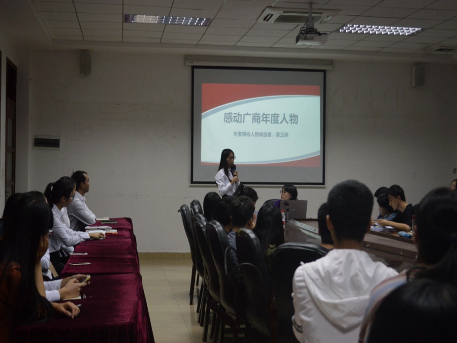 为了更好的激励学生创优争先,提高学生锻炼提升自己的积极性,金融学院于11月3日在二政108会议室举行了年度感动广商人物评选汇报。出席本次大赛的嘉宾评委有金融学院党总支书记张雪梅以及全体辅导员。